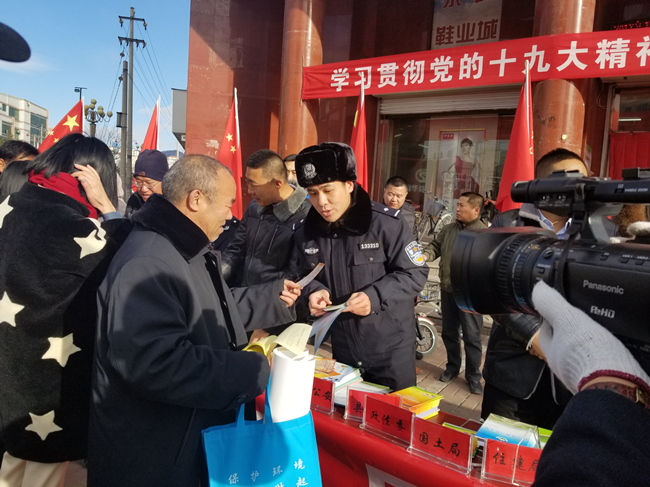 12月4日上午10点,涿鹿县森林公安局王晓黎局长带领该局一行数人在县国华商厦门口开展了法制宣传活动。